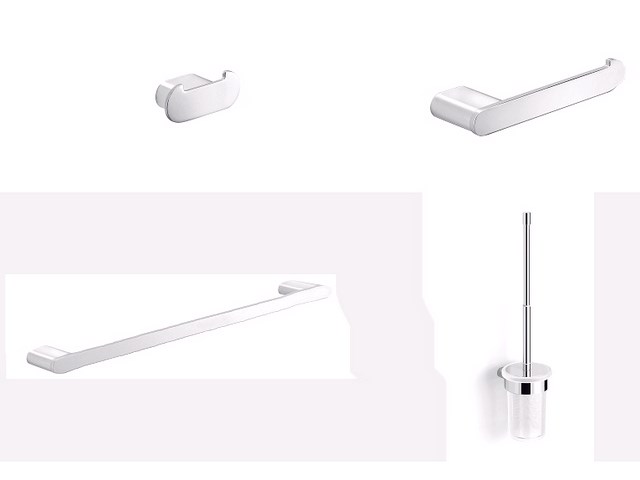 Kit AZZORRE - 2 compuesto por percha doble, portarrollos, taollero y escobillero.